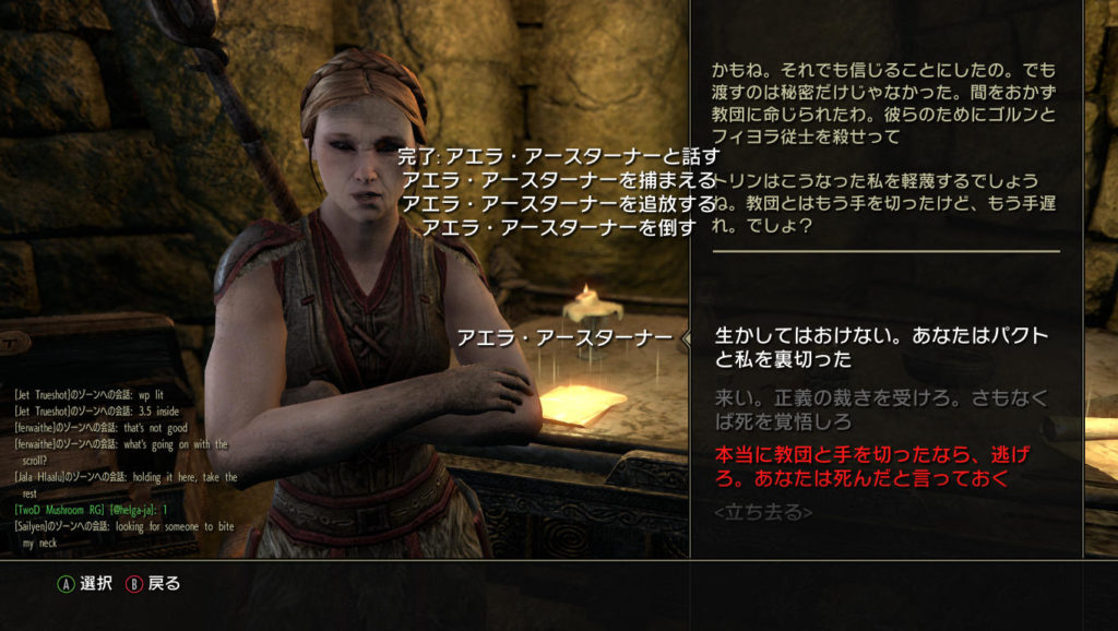 アエラさんの運命を決める選択肢で、「真ん中を選べば、衛兵に引き渡して裁判を受けさせるのかな?」って感じで真ん中選んだんですが、なぜかアエラさんを倒すことになってしまった。