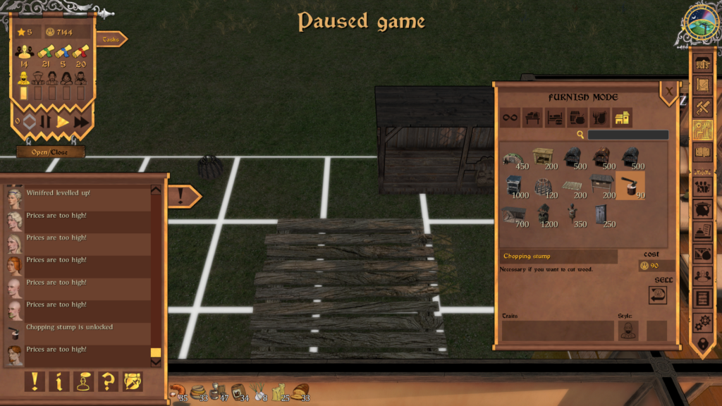 そうすることでChopping stumpが設置できるようになり、木材から薪を生産することができるようになりました。