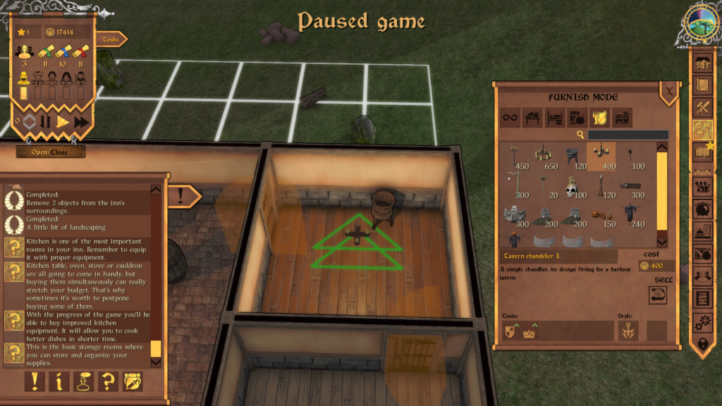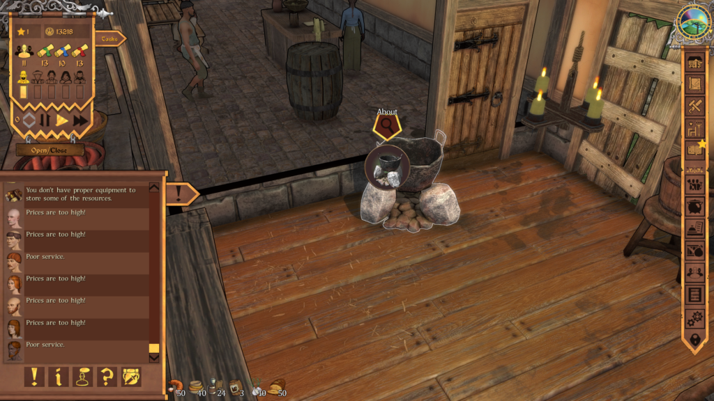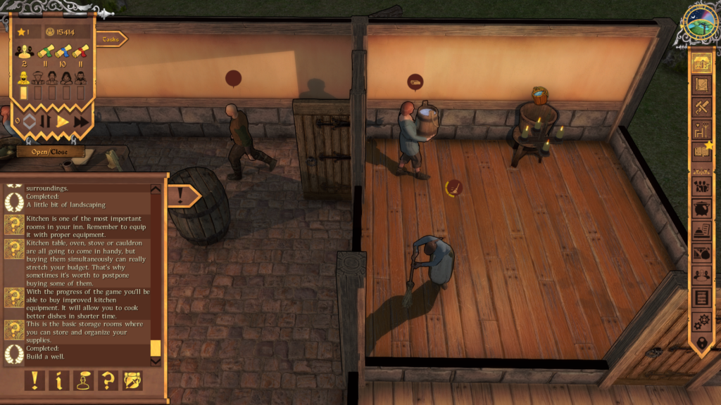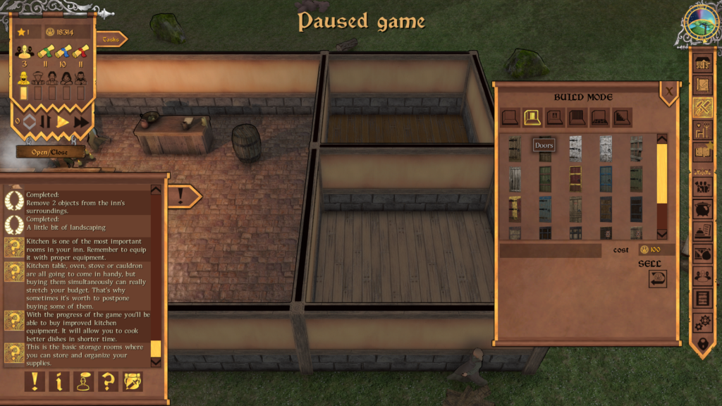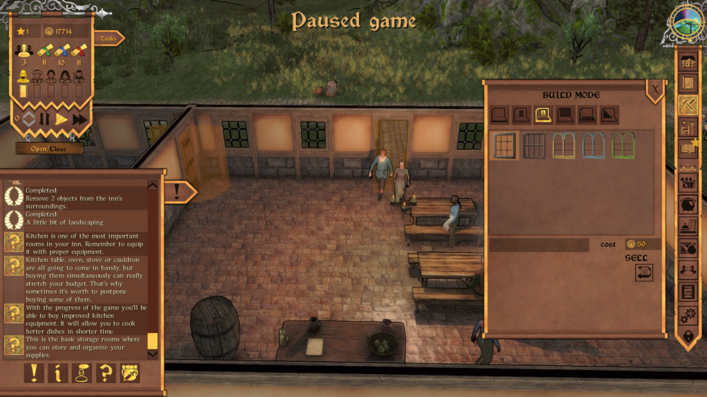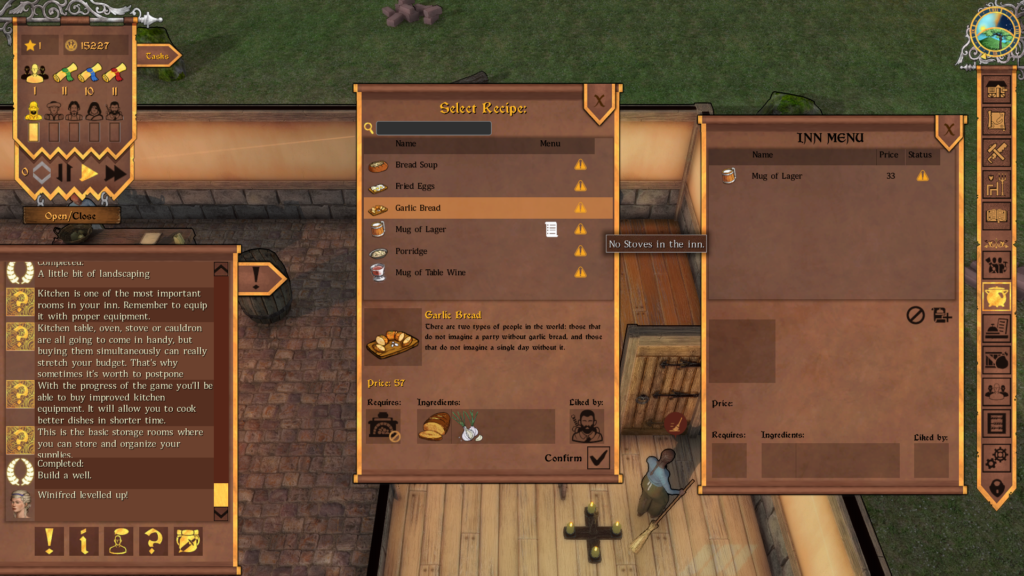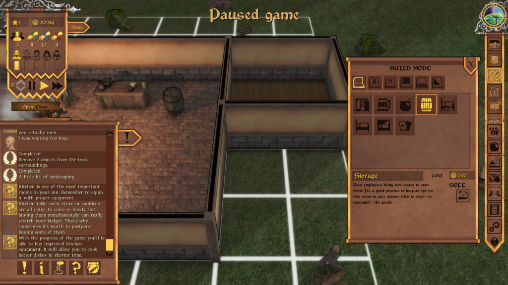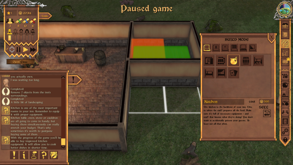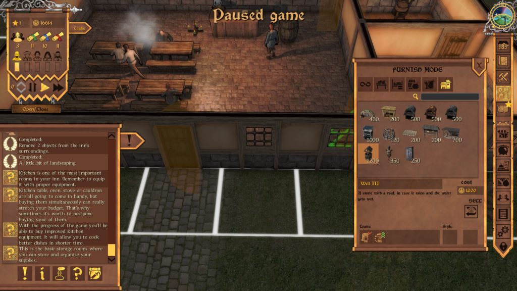 前回はメインホールの建築まで進めました。今回は宿屋に客を入れてお酒を販売してみましょう。