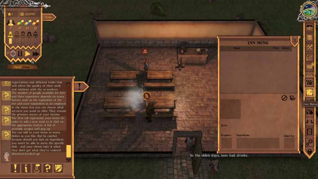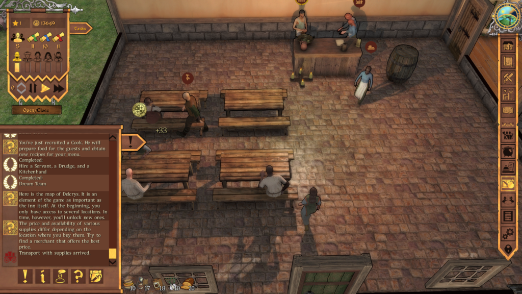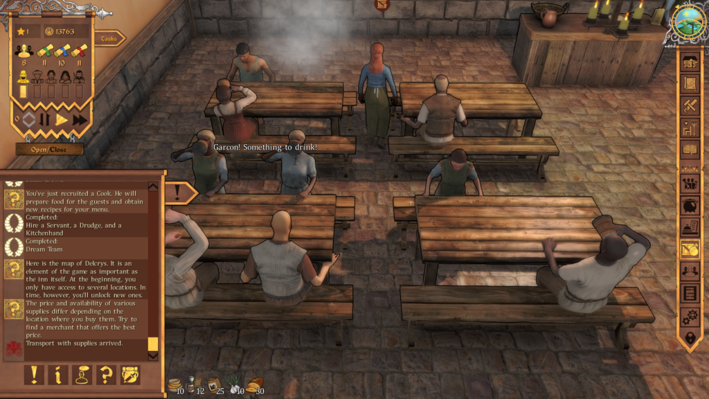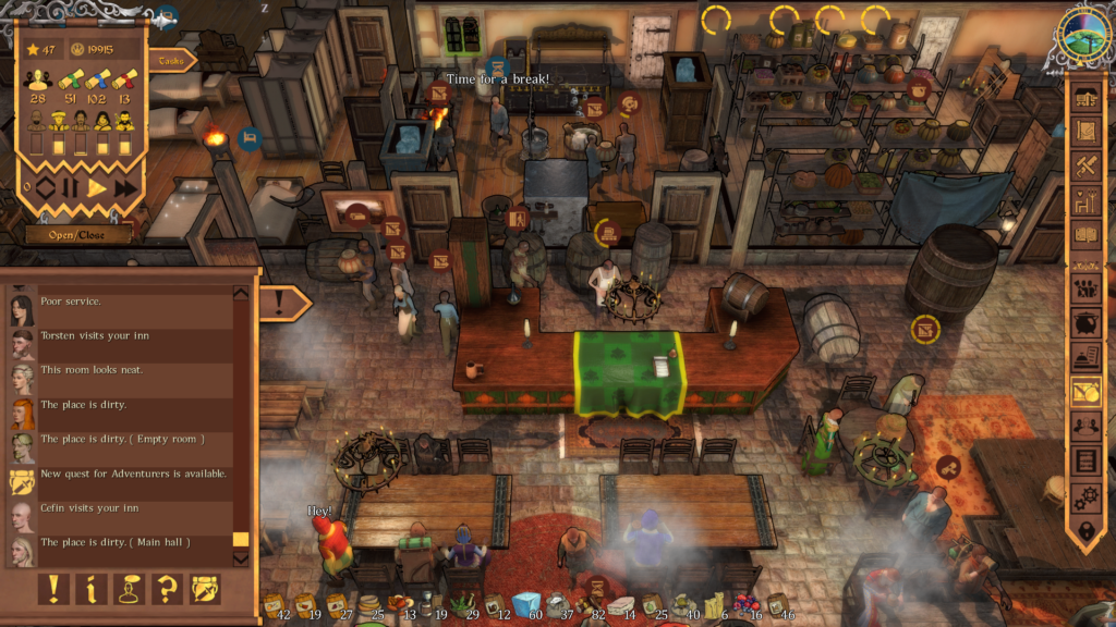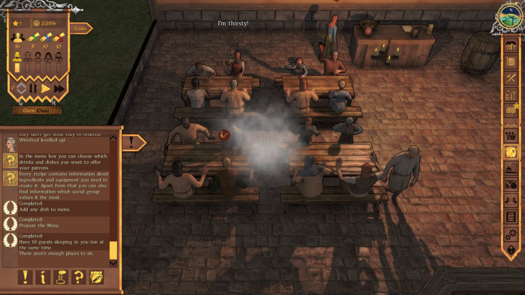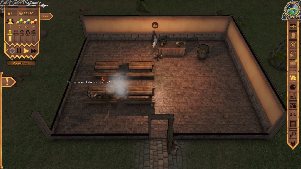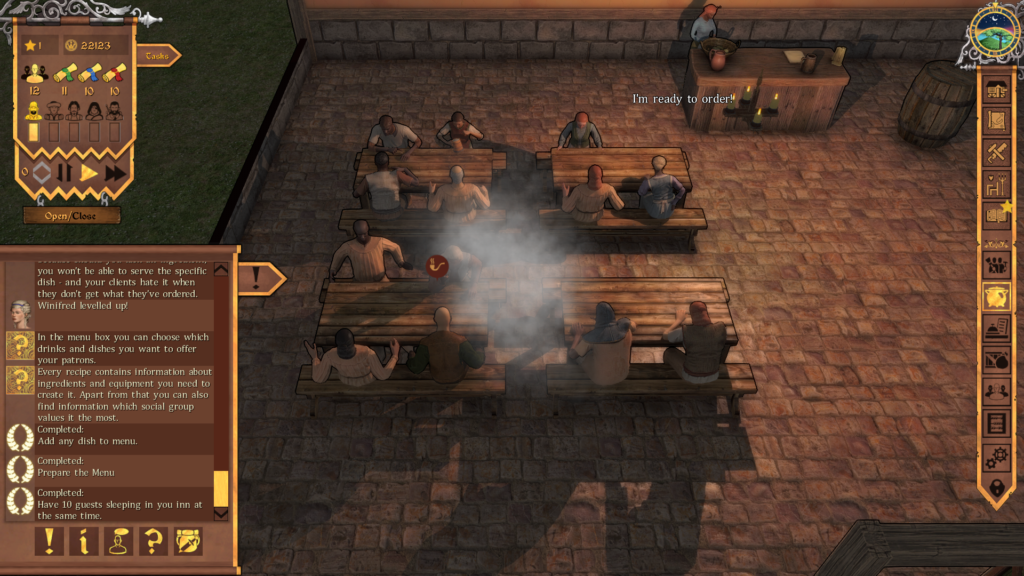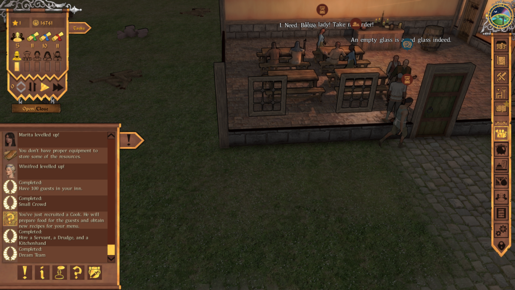 客が入ってきてテーブルにつき始めましたね。宿屋の主人が注文をとっているアイコンが表示されています。
