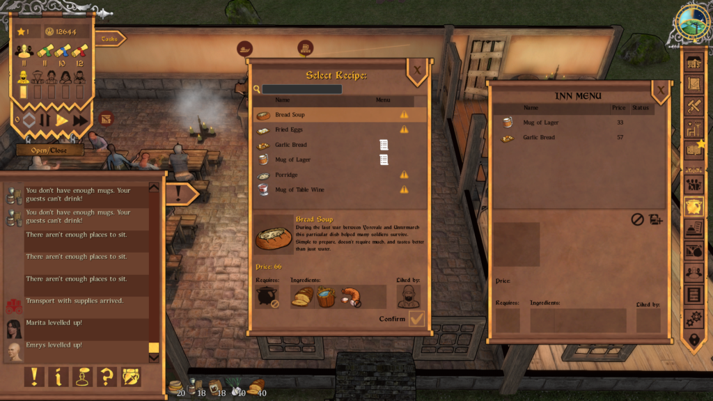 – Adjusted the amount of the favour of the social groups when they visit the tavern with menu/decorations appealing to their taste