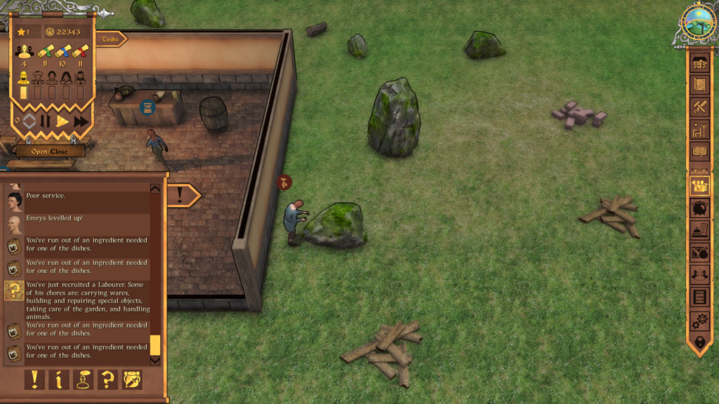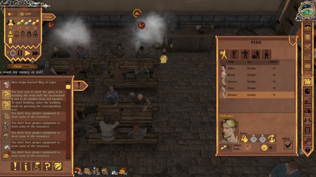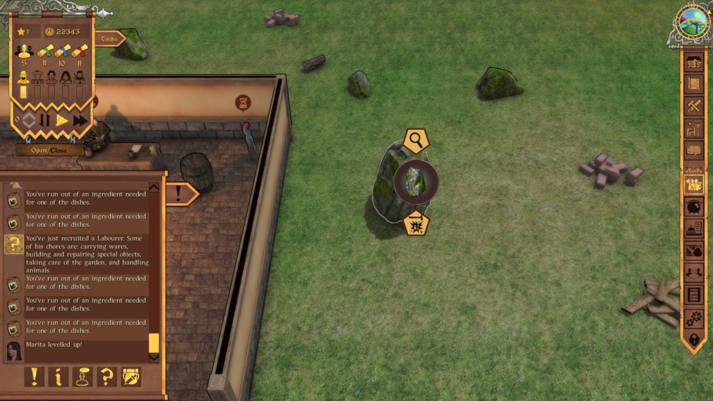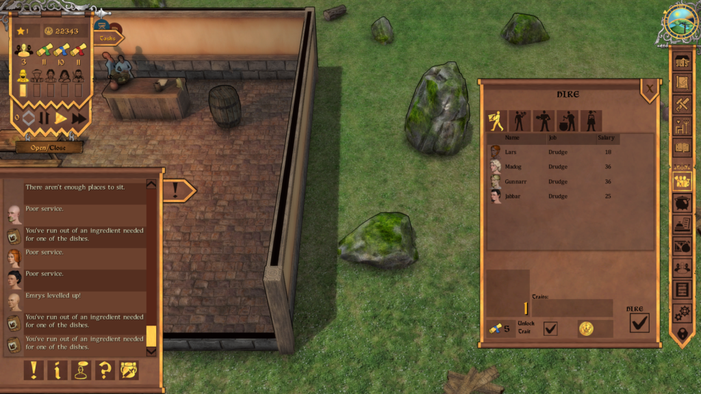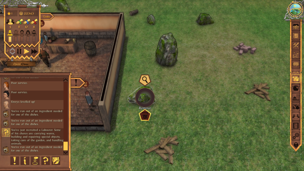 岩を破壊するために、雇用メニューから小間使いの人を雇ってみましょう。