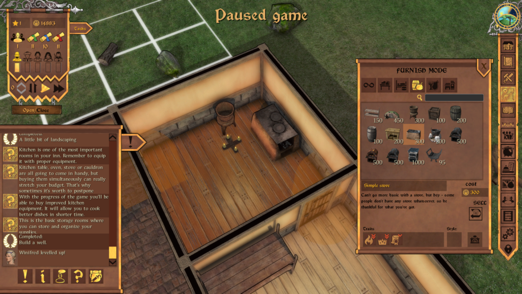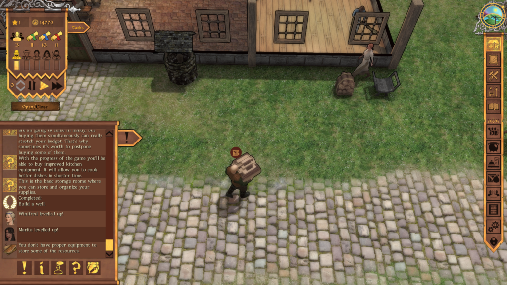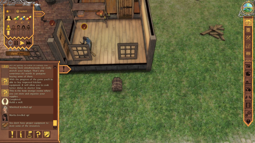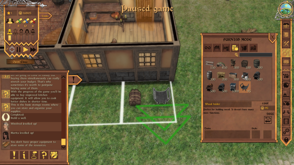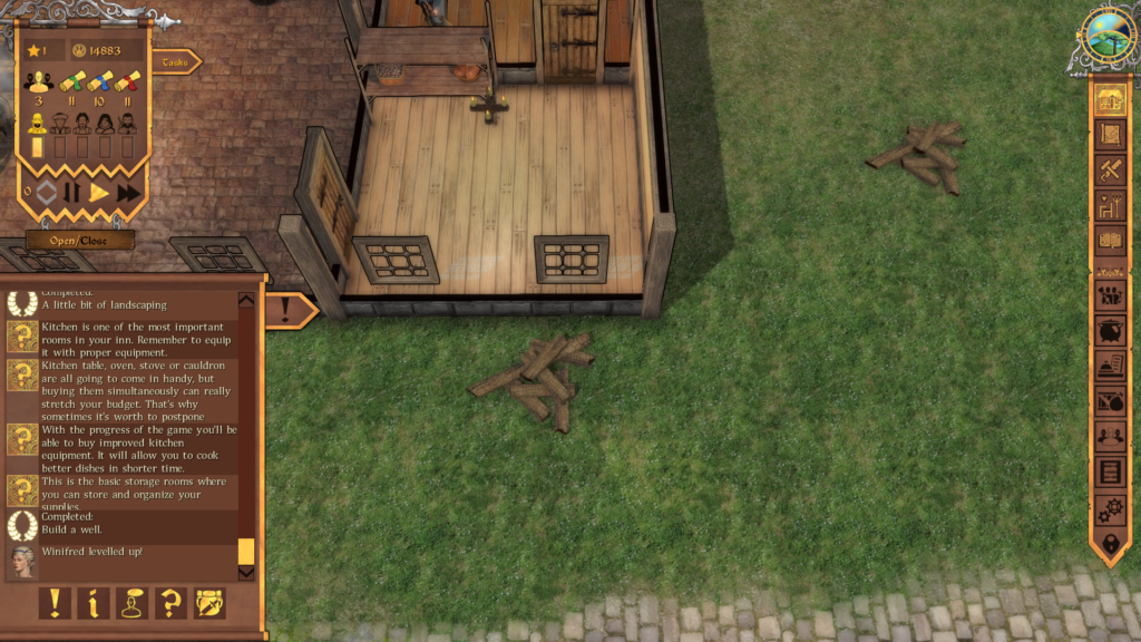 難易度ノーマルなら、最初から井戸が作れるようになっていますので、「Well」を選択し宿屋の外の白枠のエリアに設置します。