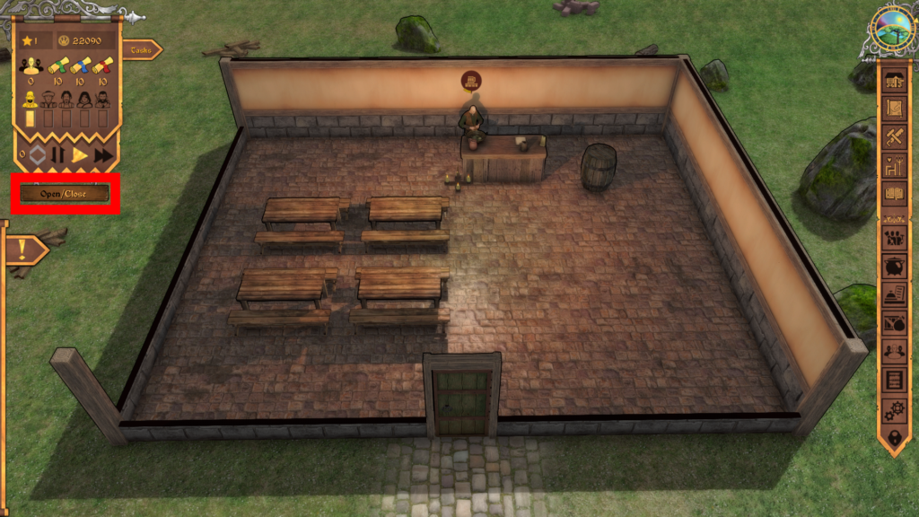 画面左側に「OPEN/CLOSE」という表示があるので、OPENをクリックし宿屋をオープンさせます。