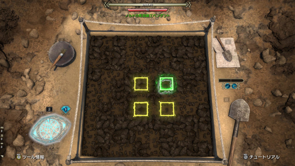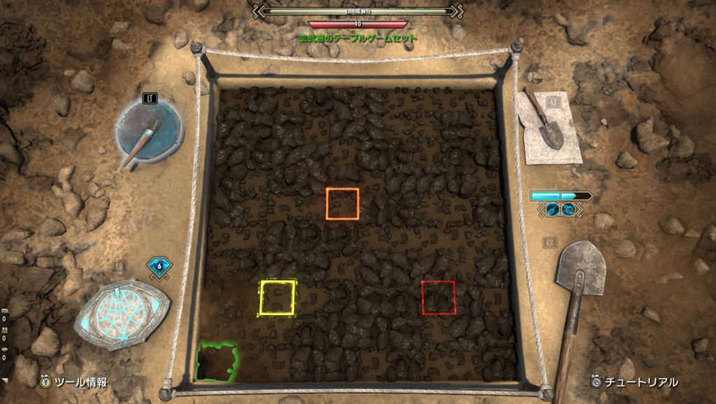 そうすることで、紫色の遺物までは、副葬品も含めて完璧にゲットできましたが、黄色の遺物の場合は、これだと時間が足りず、遺物だけでも取れればラッキー。副葬品は無理って感じでした。